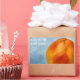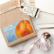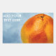 Grapefruit of bright orange color. Textured blue background. Grapefruit symbolizes abundance. Rectangular sticker for anyone. Customizable. You can change or delete the template text.