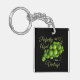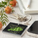 If you adore all things fruit, sweeten up your collection with this grapes keychain. Bright green is a prominent element in this design. Add a special touch by changing the text and the background color of this keychain.
