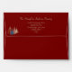 This deep red (maroon) envelope with a graphic Christmas tree design in shades of green pink and gold is a stylish and elegant Christmas envelope which matches a Holiday greeting card with the same theme and color. The colors have a Christmas feel and the envelope has a minimalistic elegance.