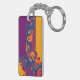 Graphic Design Pattern - violet orange + your text Keychain