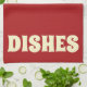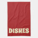 Graphic Dishes kitchen towel. Background color and text can be customized