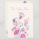 Double-sided simple modern petal confetti style floral wedding reception dinner menu in pretty pink, purple, plum and navy hues. Uniquely designed by Sarah Trett.