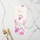 Double-sided simple modern petal confetti style floral wedding reception dinner menu in pretty pink, purple, plum and navy hues. Uniquely designed by Sarah Trett.