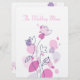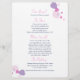 Double-sided simple modern petal confetti style floral wedding reception dinner menu in pretty pink, purple, plum and navy hues. Uniquely designed by Sarah Trett. www.sarahtrett.com for www.mylittleedenweddings.com