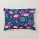 Graphic pattern of pink flamingos on a dark blue b accent pillow