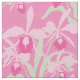 Bold pink and green stylized orchid flower patterned fabric. Background color can be changed if required currently pink. Graphic art and design by Sarah Trett.