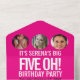 Bold simple graphic bright hot pink, black and white photo template all-in-one 50th birthday invitation. Personalize this detachable milestone birthday invitation with your own birthday party event details, and up to four different photos of your birthday girl. Invite comes with a simple RSVP detachable reply card where you can also request a song to dance to or ask for any dietary or special requirements if required. Simple three photo circles for your now and then photos and space for your own photo in the 0 of 60 on the outside flap that is up to 4 different photos for you to add. Other colors and matching items are available. © Original design by Sarah Trett for www.mylittleeden.com on Zazzle.