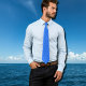 This graphic seahorse necktie features a two-tone micro pattern in two shades of blue. Printed on both sides, it’s a stylish accessory for sea lovers, adding a subtle marine touch to formal or casual outfits.