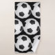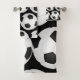 Bath towel set with bold soccer ball pattern in black and white . You can change the background color /add monogram ,text ,logo . From the store of alma's design . Ideal gift for soccer lovers /players/for a whole team.