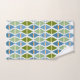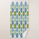 This towel set has a mid-century modern design of triangles whose bottoms have been curved, put in pairs with an oval between them. If you like the design but prefer different colors, message me.