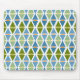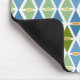 This mouse pad has a mid-century modern design of triangles whose bottoms have been curved, put in pairs with an oval between them. If you like the design but prefer different colors, message me.