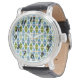 This men's watch has a mid-century modern design of triangles whose bottoms have been curved, put in pairs with an oval between them. If you like the design but prefer different colors, message me.