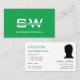 YOUR FAVORITE - Make a lasting impression with this modern business card design with monogram and (employees-) photo, on plain green and white colored backgrounds.