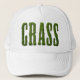 Hat with the word GRASS. The text is made from a photo of grass to make it look like it's cut from sod. Nice design for lawn care or mowing companies.