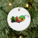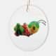A perky, comical grasshopper is featured on this holiday ornament, designed to delight the little children.