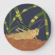 Grasshopper in Green Grass on Blue Background Large Clock