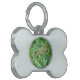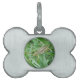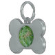 This awesome pet tag features a detailed macro photograph of a small green grasshopper with brown mottled markings sitting on the grass. In the photograph you can see the detail of the jointed legs, long antennae and black and gold eyes of the grasshopper.
