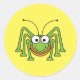 Round sticker shown with a cute cartoon grasshopper. Customize this item or buy as is.