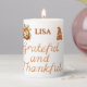 Illuminate gratitude with our Grateful and Thankful Name Monogram pillar candle. Adorned with a charming Thanksgiving gnome and pumpkin design, it's a heartfelt gift from the boss or department head to their dedicated team. Personalized with each employee's name, it brings warmth and appreciation to any space, serving as a reminder of thanks during the holiday season and beyond.