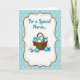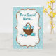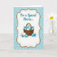 Designed with a cozy still-life scene, the artwork features a rustic woven basket in deep brown tones, filled with smooth egg shapes in crisp white and soft aqua. A few of the eggs wear slender aqua ribbons, and their gentle pairing and close spacing suggests a quiet closeness, like friends leaning in for a shared moment 🐰. The basket sits centered within a rounded, cloud-like border outlined in dark brown, with a fine dashed line tracing just inside the edge. Behind it all, a pale blue background is patterned with small white cross shapes that repeat evenly across the card. Near the top, a short thank-you message appears in flowing lettering, colored to match the aqua eggs, and it’s placed above the basket so it feels like it’s floating over the arrangement 🌷. Cool blues and whites balance the earthy browns, while the weave texture of the basket contrasts with the glossy, curved egg surfaces. The border’s dark outline and dashed inner detail frame the basket neatly against the patterned backdrop. Share warm Easter sentiments with someone special this season.