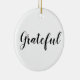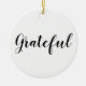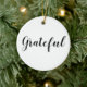Grateful black and white script calligraphy cute thanksgiving Christmas Ceramic Ornament.