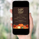A bistre, dark brown background. Decorated with pumpkins and orange and yellow flowers. Personalize and add the party details.