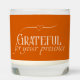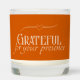 The typographic design features the phrase "Grateful for your presence" on a pumpkin orange background. It is elegant and welcoming! Personalize this item or purchase as is.