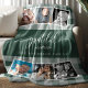 Grateful Green Plaid Fall Family 6 Photo Collage Fleece Blanket