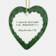 A vintage style lace overlay and scalloped white heart are elegant and charming on this green keepsake ornament that expresses your gratitude. One side has your name and the recipient's; the other quotes a scripture--Paul from Philippians 1:3--"I thank my God every time I remember you." A lovely way to express thanks.