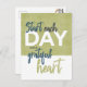 A simply designed typographical postcard with the quote 'start each day with a grateful heart'. This design features a sage green textured background with the quote in a script font and modern sans serif font. A lovely inspirational postcard to display in your home or office, or to send to a friend.