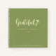 Grateful Moss Green Cream Script Sermon Notes Notebook - Minimalist moss green soothing and calming color palette, feminine design with Grateful word art. Customize with the year and your name.