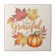 Grateful Pumpkin & Autumn Leaves Ceramic Tile
