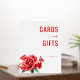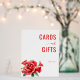 This wedding tabletop sign features a clean, minimalist design with a white background that highlights the vibrant red text reading "CARDS and GIFTS" in bold sans-serif font, accented by an elegant cursive "and." The bottom left corner showcases a realistic watercolor illustration of red roses, adding a touch of natural beauty. The overall layout balances structured typography with organic floral elements, creating a warm and appreciative mood perfect for expressing gratitude at your special event.