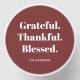 Celebrate gratitude and togetherness with this Grateful. Thankful. Blessed. mini favor candle, designed with bold white typography on a rich autumn red background.