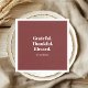 Add a touch of gratitude and elegance to your holiday table with these “Grateful. Thankful. Blessed.” cocktail napkins. Designed in a minimalist style with bold white typography on a rich burgundy background, these napkins are perfect for Thanksgiving dinner, Friendsgiving celebrations, or fall parties. Ideal for cocktails, desserts, or appetizers, they also make a thoughtful hostess gift. Pair with matching wine labels and gift tags for a coordinated holiday look.