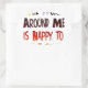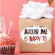 The design features the warm, impactful message, "THE WORLD AROUND ME IS HAPPY TO HAVE YOU," rendered in playful, mismatched, multi-colored typography. The diverse colors—from yellow and purple to red and orange—give the piece a fun, kinetic, and uplifting aesthetic that is instantly eye-catching and sincere.