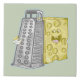 A funny cartoon illustration of a cheese grater giving a block of cheese a massage. The block of cheese has its arm around the cheese grater and they are best of friends. A funny design for anyone who loves cheese.