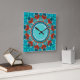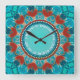 Gratitude Aqua Teal Mandala Customizable Quote Square Wall Clock