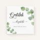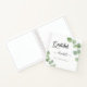 A white background color. Decorated with elegant eucalyptus greenery sprigs. Add a name and text.