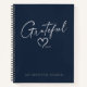Attract that positive energy with a personalized "Gratitude Journal" notebook, featuring a unique custom - modern minimal design with "Grateful" in elegant handwritten ink script, a beautiful calligraphy style heart and your personalized name. In north sea blue, gray and white or easily edit the primary color as you like. A great gift for yourself and maybe someone else.