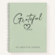 Attract that positive energy with a personalized "Gratitude Journal" notebook, featuring a unique custom - modern minimal design with "Grateful" in elegant handwritten ink script, a beautiful calligraphy style heart and your personalized name. In light sage green, black and gray or easily edit the primary color as you like. A great gift for yourself and maybe someone else.