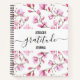 Personalized elegant gratitude journal with a cute pink magnolia pattern on white background and a hand lettering gratitude title. Personalize with your name and text.