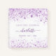 A stylish white background with violet, purple faux glitter dust. Add your name, and text. The name is written with a hand lettered style script with swashes.