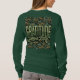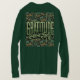 This t-shirt features a digital art print with the words Gratitude and Plant Lady in metallic green letters. The words are centered on a seamless pattern of intertwined plants and foliage in metallic green and gold hues. The words Plant Lady" appear below Gratitude in a smaller, classic metallic green script, gracefully curving along the bottom edge of the composition. The background is a repeating pattern of stylized leaves and vines, creating a lush and textured surface that complements the metallic lettering. The t-shirt is a Women's Basic Long Sleeve T-Shirt. The t-shirt is a forest green color.