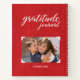 Create your own special gratitude journal with a custom photo under white corners on a printed red linen texture photo background like a scrapbook page. The words "gratitude journal" are in a white handwritten script font near the top. Your name and the year appears in a simple white sans serif font near the bottom. Personalize it with your custom text and image in the sidebar. Other inside paper styles and notebook options also available in the sidebar.