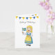 Grattis på födelsedagen! This Swedish birthday card (födelsedagskort) features a cute girl in traditional Swedish costume with Swedish flag and Swedish flag color party bunting (blue and yellow/gold). Includes Swedish birthday greeting 'Grattis på födelsedagen' (happy birthday in Swedish). Message inside card reads 'Grattis på födelsedagen' and includes Swedish flag color bunting.