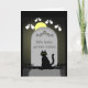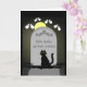 A black cat sits enigmatically in front of a headstone on a grave in the moonlight. There are sad ghost eyes around the headstone and the epitaph reads: We have grave news, Inside the card the caption reads: Your birthday cake didn't make it. It was crushed by the weight of the candles. This is a great card for people who like to make age jokes about peoples' birthdays.