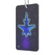 A simple, blue-toned 3D fractal image resembling a stylized spaceship superimposed on a starry background. Concentric rings (gravity waves?) emanate from the spacecraft into the seemingly empty vacuum of space. A light blue aura surrounds the spacecraft, perhaps the result faster-than-light travel. Customize by adding your own text on the reverse side.