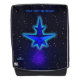 A simple, blue-toned 3D fractal image resembling a stylized spaceship superimposed on a starry background. Concentric rings (gravity waves?) emanate from the spacecraft into the seemingly empty vacuum of space. A light blue aura surrounds the spacecraft, perhaps the result faster-than-light travel. Add your own text.