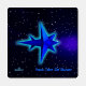 A simple, blue-toned 3D fractal image resembling a stylized spaceship superimposed on a starry background. Concentric rings (gravity waves?) emanate from the spacecraft into the seemingly empty vacuum of space. A light blue aura surrounds the spacecraft, perhaps the result faster-than-light travel. Add your own text.